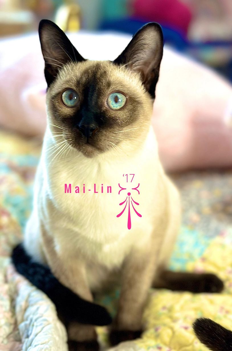 Mai-Lin is a Traditional Applehead Seal Point Siamese retired Queen who gave birth to just two litters of kittens in her career but she would rather not be a mother but instead she literally prefers to have her sister nurse her kittens FOR HER while she watches laying in some comfy bed! She also has a slight kink in her tail, which DOES have several folklore stories about why Siamese have kinked tails and why it’s seen as a lucky trait for one to have one…BUT a good, ethical breeder knows that this is a congenital defect that IS passed from mother to baby and father to baby as well. So this is why I am retiring her after only giving birth to two litters because in her first litter there were 2 out of 6 that had kinked tails and in her second litter there are three out of four that have kinked tails.